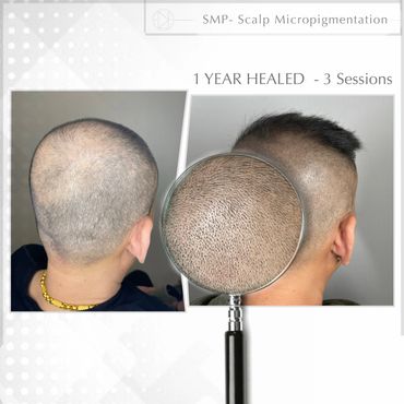 Scalp Micropigmentation is a non-invasive multisession cosmetic treatment that recreates the appearance of hair in people with baldness, thinning hair, Alopecia or covering Hair transplant scars.